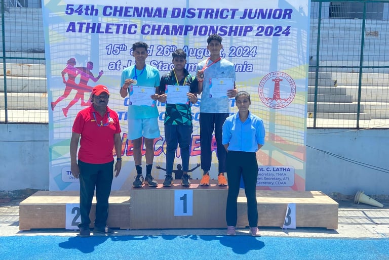 The 54th Chennai District Athletic Championship Meet showcased remarkable athletic talent across various events. This year's competition saw young athletes stepping up to demonstrate their skills, drive, and dedication to their respective sports. Among those who shone brightly were M. Harwin and S. Sujitha, both of whom displayed outstanding performances in their events.